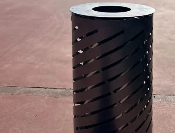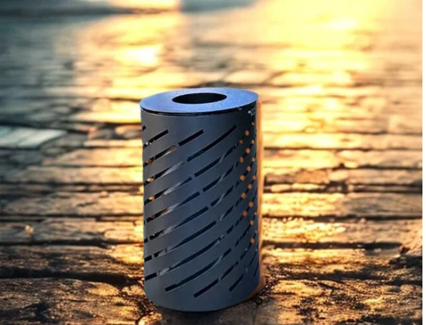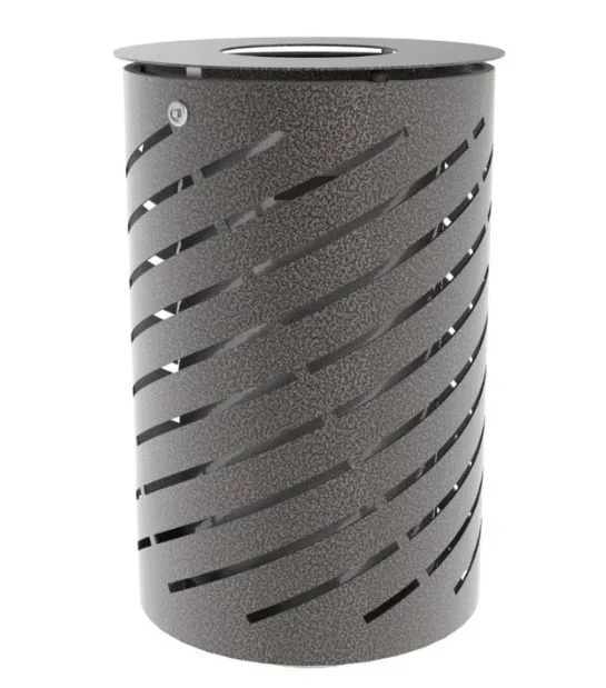 Papelera urbana Spiral, fabricada en acero galvanizado y acabado epoxi. Capacidad de 65 Litros que permite un uso urbano con buen volumen sin resultar voluminosa en exceso. Especialmente diseñada para su instalación en entornos callejeros, parques, jardines y zonas de paso. Su diseño elegante y contemporáneo, combinado con materiales robustos y acabados de alta calidad, la convierten en una opción excelente para proyectos que requieren funcionalidad, fiabilidad y estética.