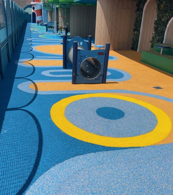 Césped artificial para parques infantiles, manteniendo la seguridad y la estética.