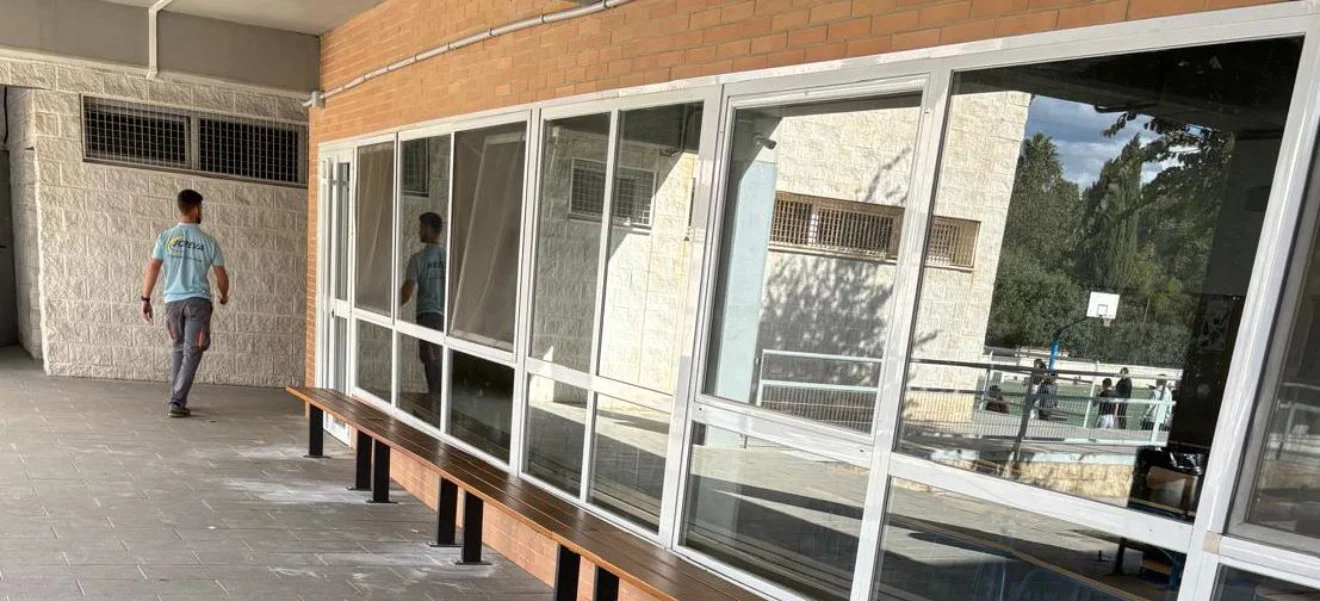 En este proyecto se ha querido de dotar de bancos para el asiento de estudiantes en una zona de transito al lado de un patio de recreo y zonas deportivas.