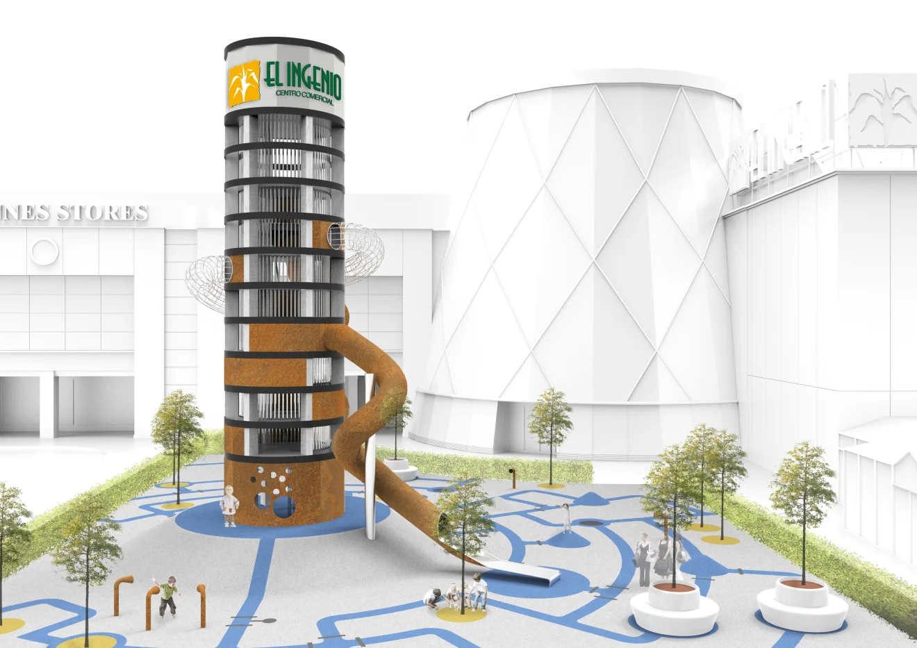 Como parte de la reforma del centro comercial, siempre pensando en la innovación y el diseño se pensó en incorporar un parque infantil que sea algo emblemático y original , para aumentar el tiempo de permanencia del visitante, hacerlo más atractivo y para atender la demanda de los clientes, ya que en zonas de alrededor no existen parques infantiles.
