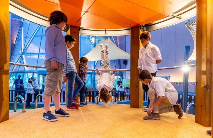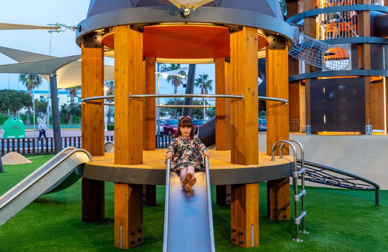 La instalación de distintos niveles de complejidad (plataformas, toboganes grandes de 4 a 6 metros, redes, túneles...) fomentando la actividad física, coordinación motriz, desarrollo del equilibrio y la aventura. Garantizando la seguridad y el aforo con un uso de normas claras, control de aforo, limpieza, desinfección y supervisión.